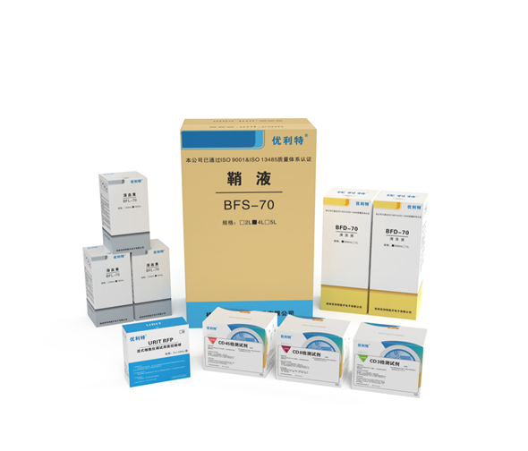 溶血素(BFL-70,100mL)、鞘液(BFS-70,4L)、清洗液(BFD-70,500mL)、流式細胞儀(yí)調試用質控(kòng)微球(3×10mL/盒)、URIT CD檢測試劑。