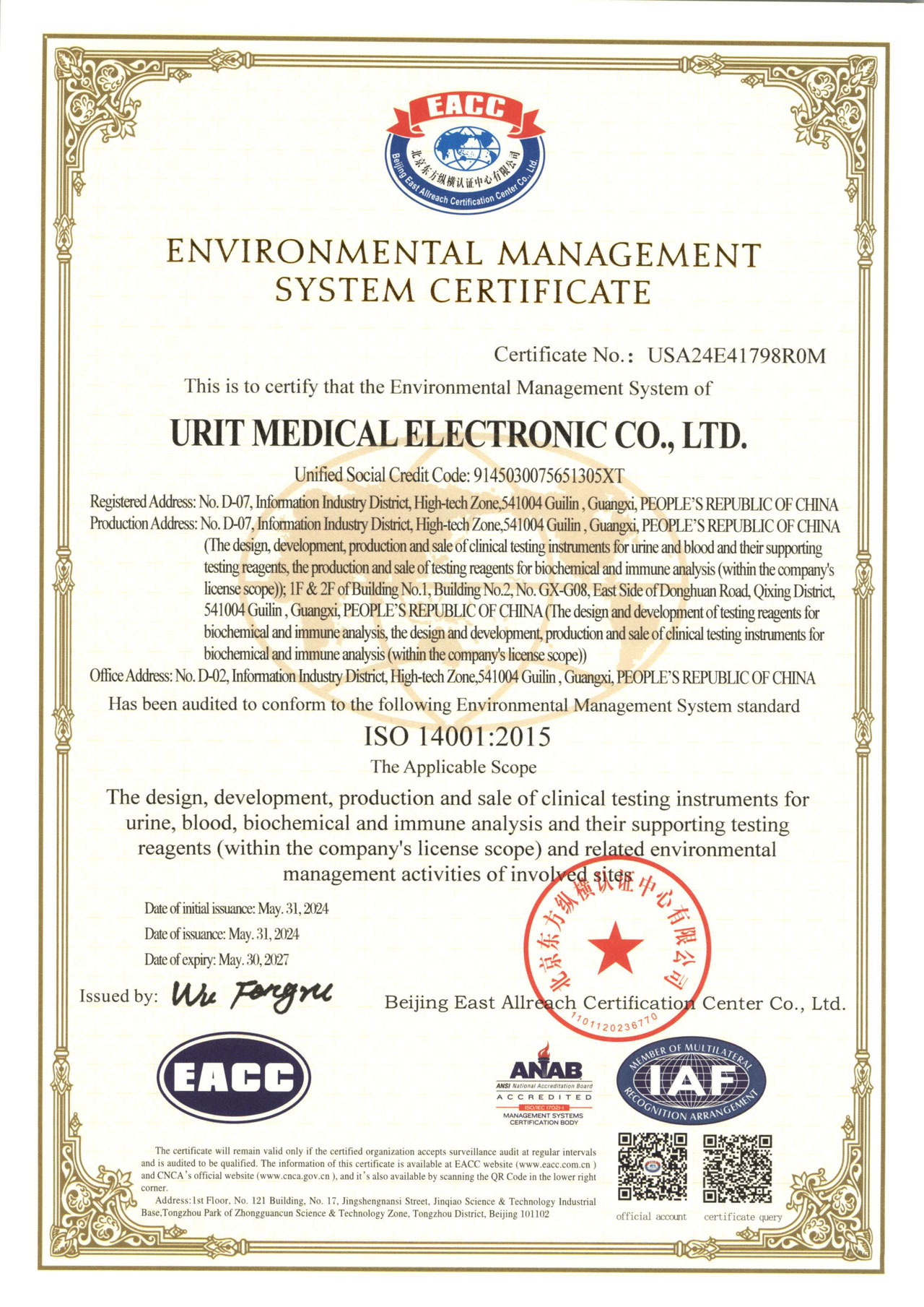 URIT Achieves ISO14001: Paving the Way for Sustainable Quality Leadership!——