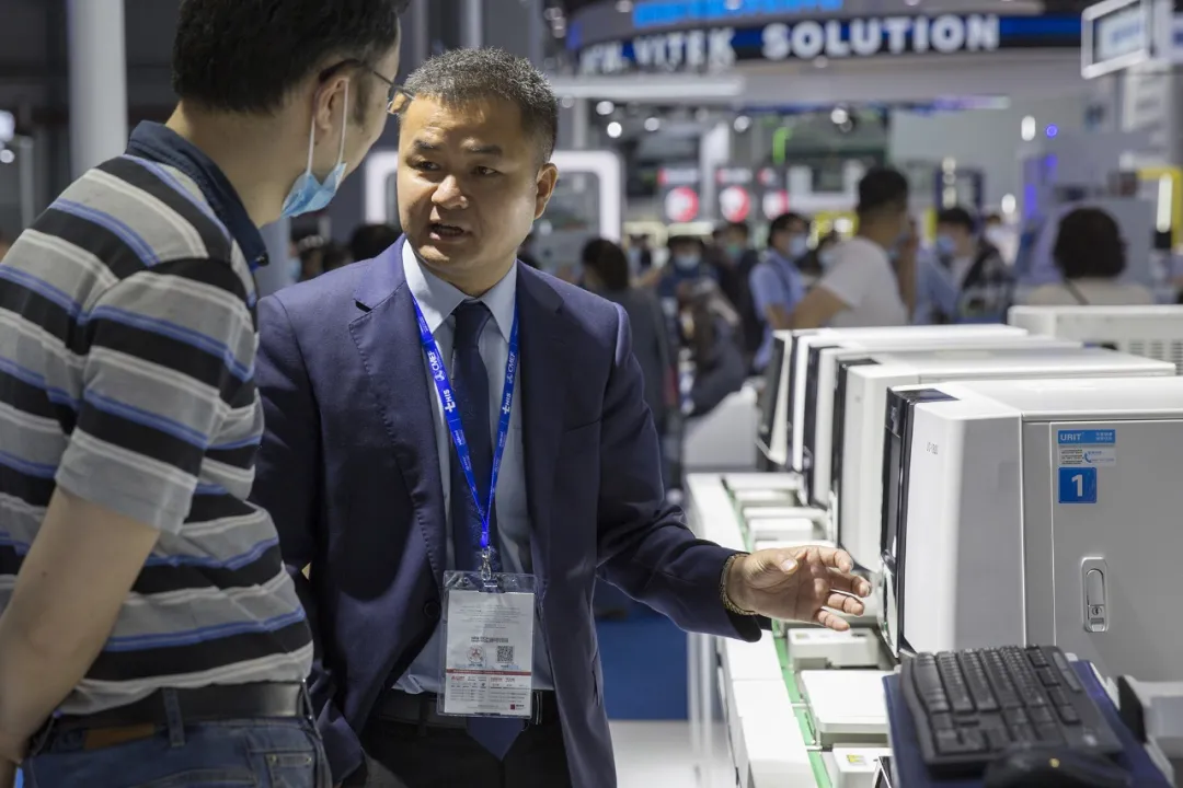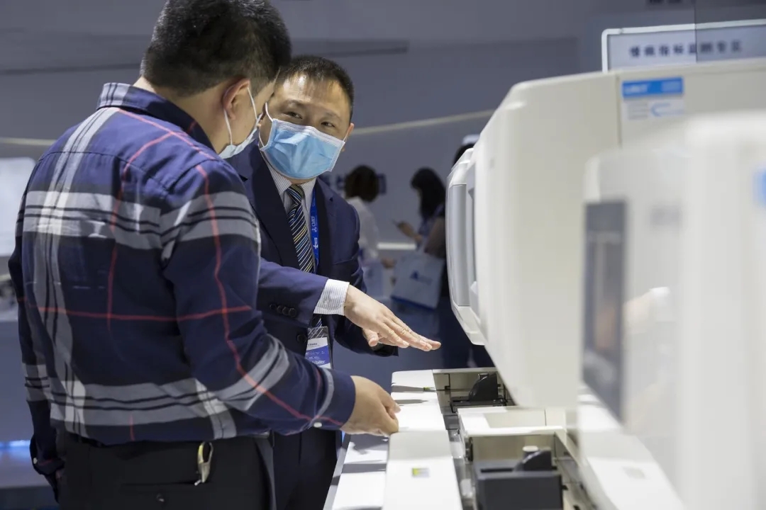 2021年,優利特多款全自(zì)動生化分析儀入選第七批優秀國產(chǎn)醫療設備遴選,白求恩精神(shén)研究會檢驗醫學分會會長(zhǎng)董書魁先生蒞臨(lín)優利特展台參觀指導(dǎo)。