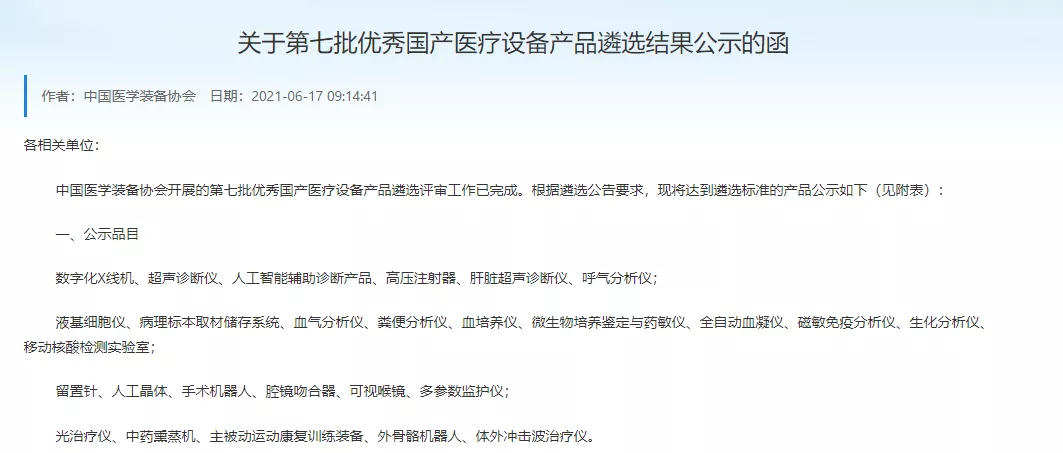 近日,中國(guó)醫學裝備協會最新發布了(le)《關於第七批優秀國產醫療設備產品遴選結果公示的函》的通知,公示了達到遴選(xuǎn)標(biāo)準的產品,優(yōu)利特申報的12個型號全自動生化分析(xī)儀全部上榜,成功入(rù)圍率(lǜ)達100%。 優秀國產醫療設備遴選工作評選標準嚴格,過程規範,從2014年5月啟動(dòng)至今,一直是國內醫療器械(xiè)領域的焦點話題,遴選結果受到國內各界人士的高度重視和期待,也成為了各級(jí)醫療機構選購產品的風向標。 優利特全自動(dòng)生(shēng)化分析儀第(dì)三次入選優秀國產醫療設備遴選,這既是對優利特產品(pǐn)的肯定,也是對優利特未來持續創(chuàng)新的鞭策。未來,優利特堅持在自主創新的道路(lù)上繼續探索,加快在醫療科技領(lǐng)域的(de)突破發展,不斷推出性(xìng)能優越的產品,讓全(quán)球客戶享受到高品質的醫(yī)療產品和服務。